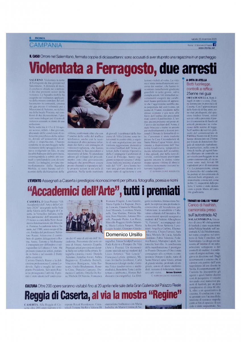 ASSEGNAZIONE DEL PREMIO INTERNAZIONALE GLI ACCADEMICI DELL'ARTE E DELLA CULTURA 2026 - REGGIA DI CASERTA SALA DELLA GLORIA 6 DICEMBRE 2025