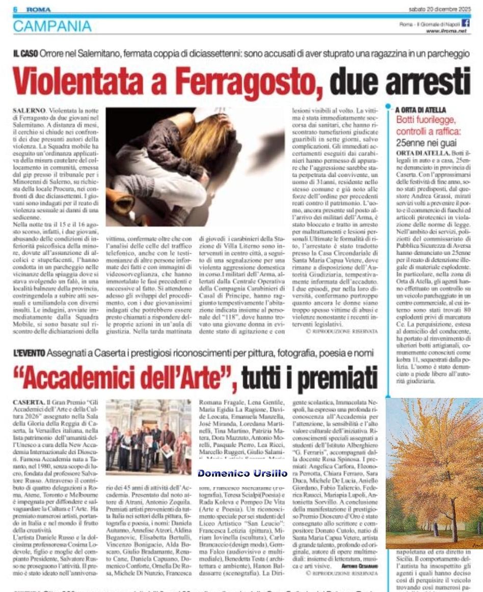 PREMIO GLI ACCADEMICI DELL'ARTE E DELLA CULTURA 2026 . REGGIA DI CASERTA SALA DELLA GLORIA 6 DICEMBRE 2025