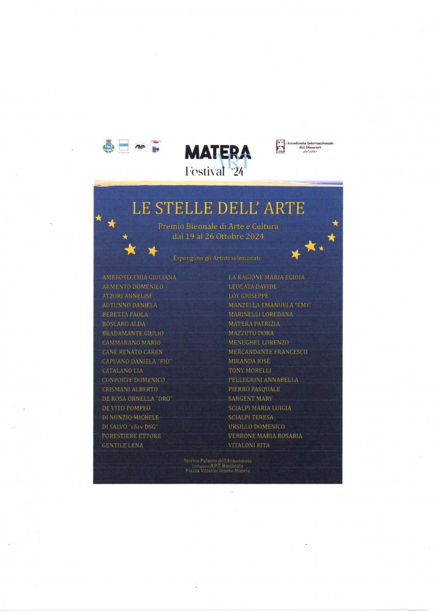 MATERA ART FESTIVAL "2024 LE STELLE DELL'ARTE PREMIO BIENNALE DI ARTE E CULTURA
