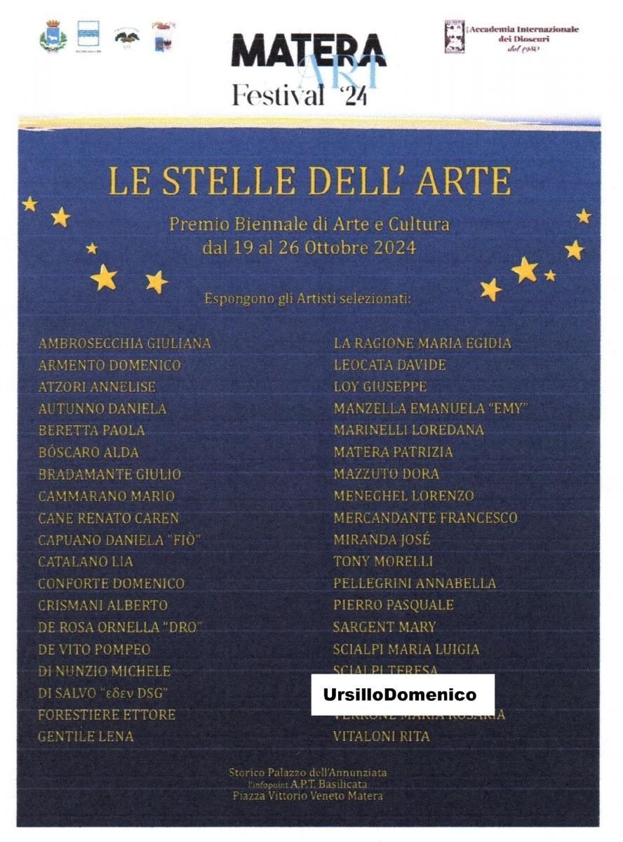 PREMIO BIENNALE DI ARTE E CULTURA MATERA ART FESTIVAL "2024 LE STELLE DELL'ARTE - PREMIO BIENNALE DI ARTE E CULTURA